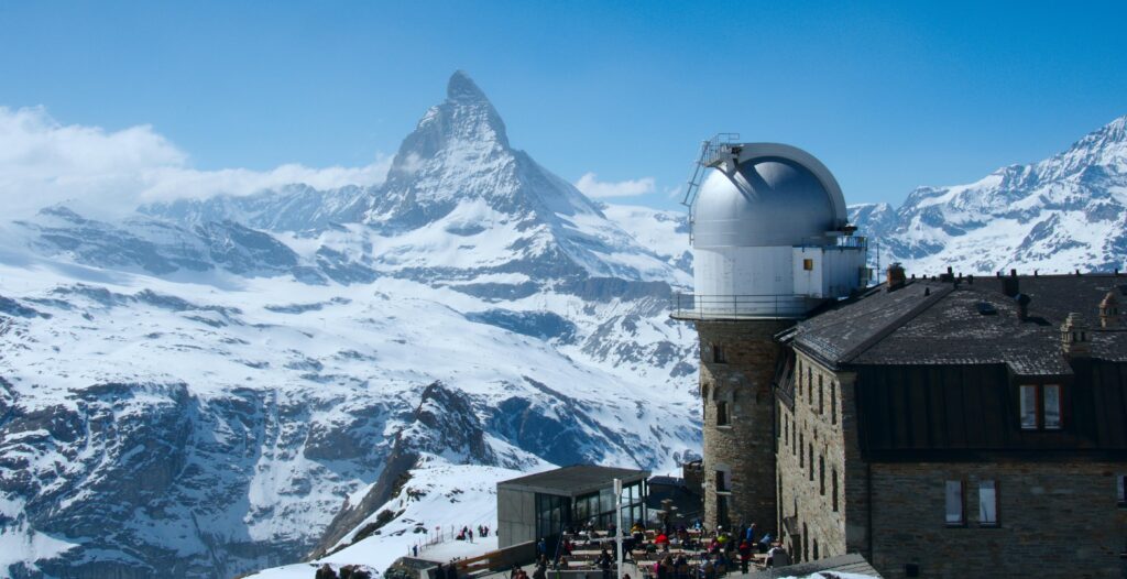 ゴルナーグラート展望台は、スイスの中でも「一度は行くべき」と言われる人気スポットです。標高は約3,100m。空気が澄んでいて、遠くの山までくっきり見えるので、写真好きはもちろん、山に詳しくない人でも思わず息を飲むような景色が広がります。