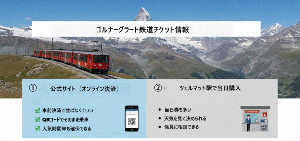ゴルナーグラート鉄道は 公式サイト から簡単に予約できます。