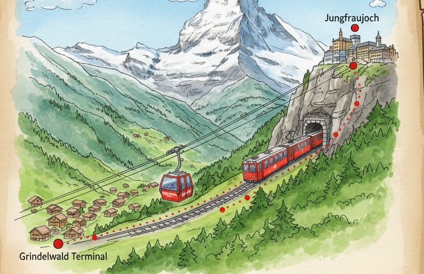 どちらも魅力があるので、行きはエイガーエクスプレス、帰りは登山鉄道というハイブリッドルートにする人も多いです。私もそのパターンで行った時がいちばん満足度が高かったですし、移動が単なる移動ではなく「旅の思い出」になります。