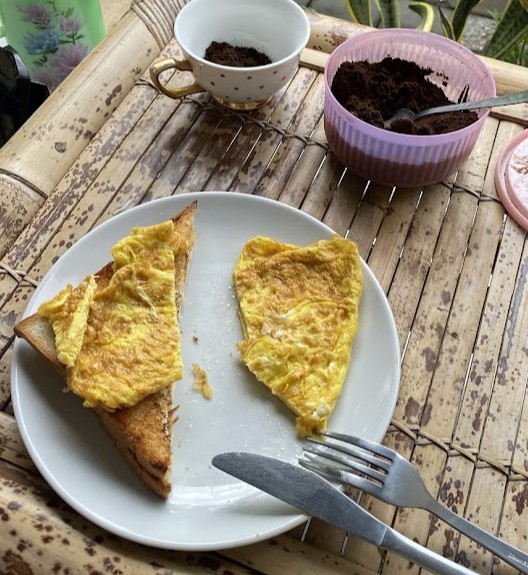 朝ごはんはオムレツとトースト、コーヒー付き。