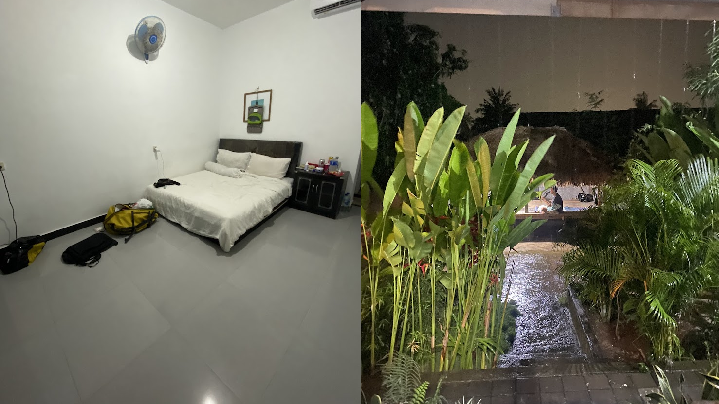無事ホテルに戻ってチェックイン。ホテルといっても私たちが普段想像するのとは少し違って、写真を見てもらったら分かるように平屋で部屋数は5部屋くらいあったのかな?大体家族経営。インドネシアではこういう宿泊施設をホテルと呼ばずにホームステイと呼んでいるみたいです。