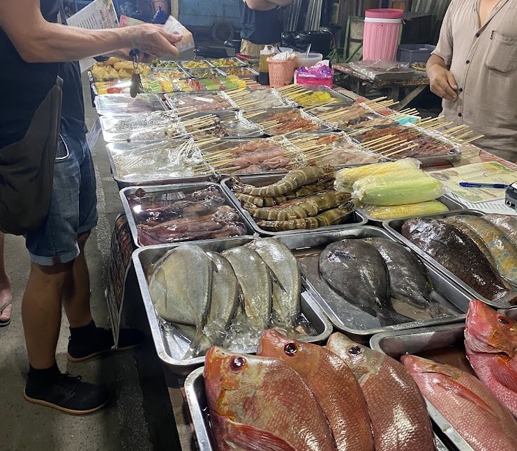 明日の体験ダイビングの予約をしてから、夜はみんなでフィッシュマーケットへ。