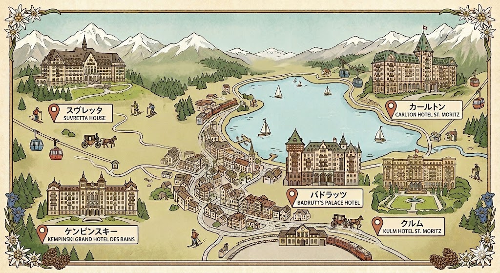 サンモリッツの高級ホテルは、次の5つの軸で選ぶのがいちばん分かりやすいと思います。