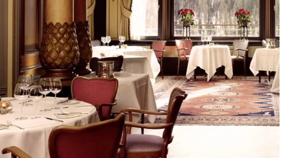 サンモリッツの中でも象徴的な存在で、いわゆる“王道ラグジュアリー”。